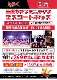 【試合情報】4/11(土)仙台戦 「メガスポーツ プレゼンツ エスコートキッズ」開催のお知らせ