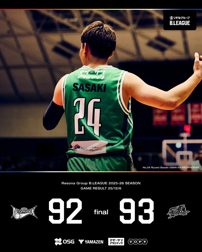 【試合結果】12/6(土)りそなグループ B.LEAGUE 2025-26 B1リーグ戦 第12節 GAME1 三遠 92-93 島根