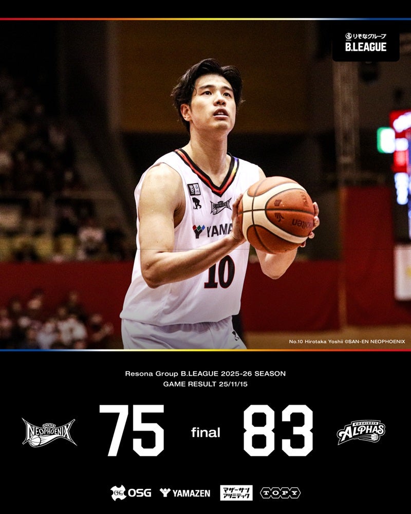 【試合結果】11/15(土)りそなグループ B.LEAGUE 2025-26 B1リーグ戦 第11節 GAME1 越谷 83-75 三遠