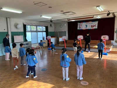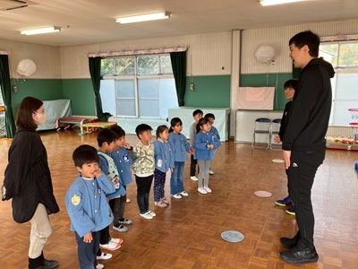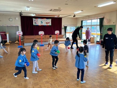 当日は、医療法人 信愛会 理事長 大石 明宣さまと専務理事 大石 宗弘さま、三遠ネオフェニックス アカデミーコーチ 小畑 亜章子、フロントスタッフ 太田 敦也が訪問し、園児の皆さんと楽しくバスケットボール交流会を実施いたしました。