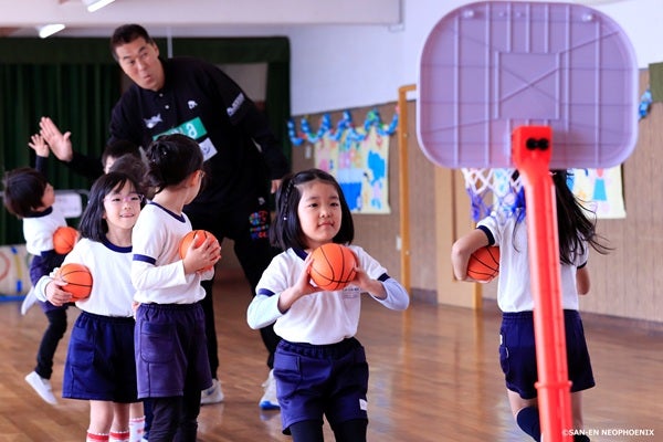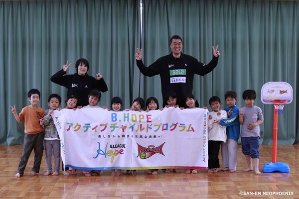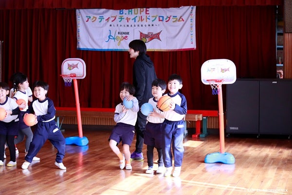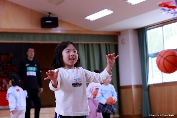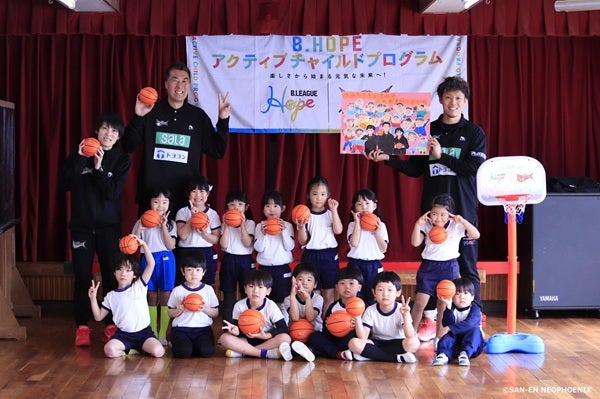 このたび三遠ネオフェニックスは、B.LEAGUEの社会的責任活動である「B.Hope アクティブチャイルドプログラム」の一環として、三遠地域の保育園に訪問し、心身共に発達・発育における重要な年代を迎える幼児期の子どもたちに対し、身体を動かす楽しさや喜びを伝え、運動習慣や生活習慣を改善するきっかけとなる取り組みを実施しています。