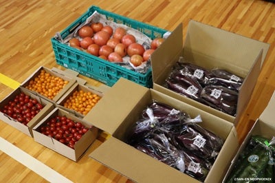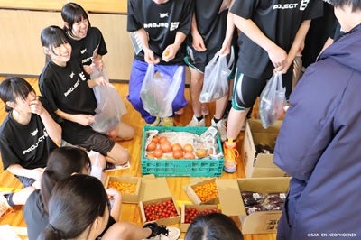 また、「食育」という観点から、成⾧期の子どもたちに競技力向上や怪我をしづらい身体づくりの大切さを伝えたいという想いのもと、豊橋市で農業を営む「松井農園」をはじめとする地元農家の皆さまよりご提供いただいた、採れたての野菜を部員の皆さんへお渡しさせていただきました。
