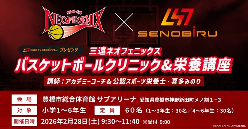 2/28(土)SENOBIRU Presents 三遠ネオフェニックス バスケットボールクリニック&栄養講座 開催のお知らせ
