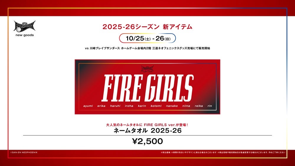 このたび10月25日(土)、26日(日)ホーム 川崎戦より2025-26シーズンの新グッズを販売いたしますので、お知らせいたします。