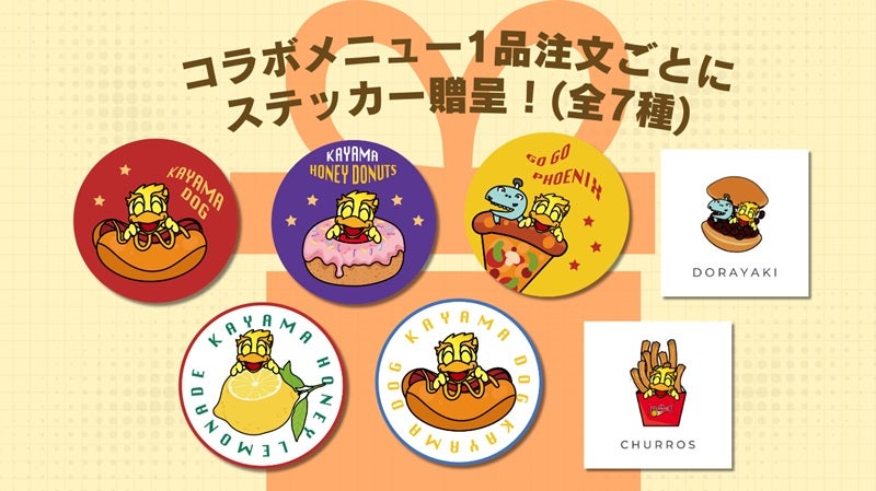 | コラボメニュー | ①ダンカーのくちばし(チーズホットドッグ):1,000円(税込) かぼちゃフレーバーのパンをくちばしに見立てたホットドッグ。 濃厚チーズソースと肉感ソーセージのがっつりグルメ! ②フェニックスレモネード:600円(税込) フェニックスカラーの赤色レモネード! レモン&ベリーの相性抜群な逸品! 見た目も可愛いオリジナルレモネードです。 ③シナモンチュロス:300円(税込) シンプルなシナモンチュロス! ダンカーのオリジナルラベルはここだけの限定! 手軽にサクッとおやつにどうぞ。 |