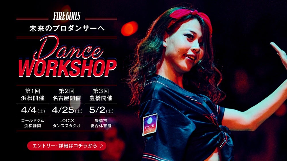 このたび4月4日(土)、25日(土)、5月2日(土)に、「ダンスを仕事にしたい!」「ダンスのスキルアップをしたい!」「FIRE GIRLSになりたい!」と考えている方のための「FIRE GIRLS ダンスワークショップ」を浜松市、名古屋市、豊橋市の3都市で開催いたしますので、お知らせいたします。