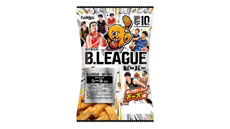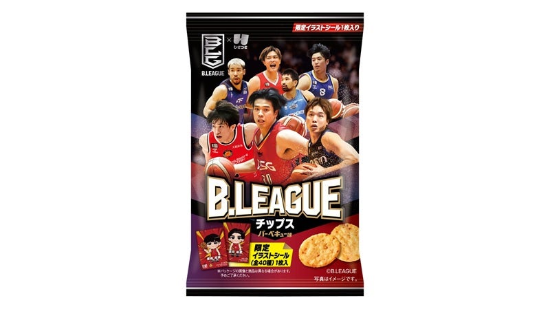 | 付録 | Bリーグの選手がデザインされたパッケージは全4種。 イラストシールは本商品限定デザインであるB1・B2クラブ全40種のうち、ランダムで1枚が入っています。 また、Bリーグ公式デジタルカード「B.LEAGUE CARD」が獲得できるシリアルナンバーも同梱されます。 お菓子は食べやすいバーベキュー味の薄焼きせんべいで、試合観戦のお供にぴったりです! |