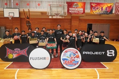 | 寄贈品 | ・オリジナルTシャツ ・バスケットボール(PROJECT8・クラブロゴ入り) ・D-MAN(バスケットボール ディフェンスマネキン) ・野菜 ・かりんとう |