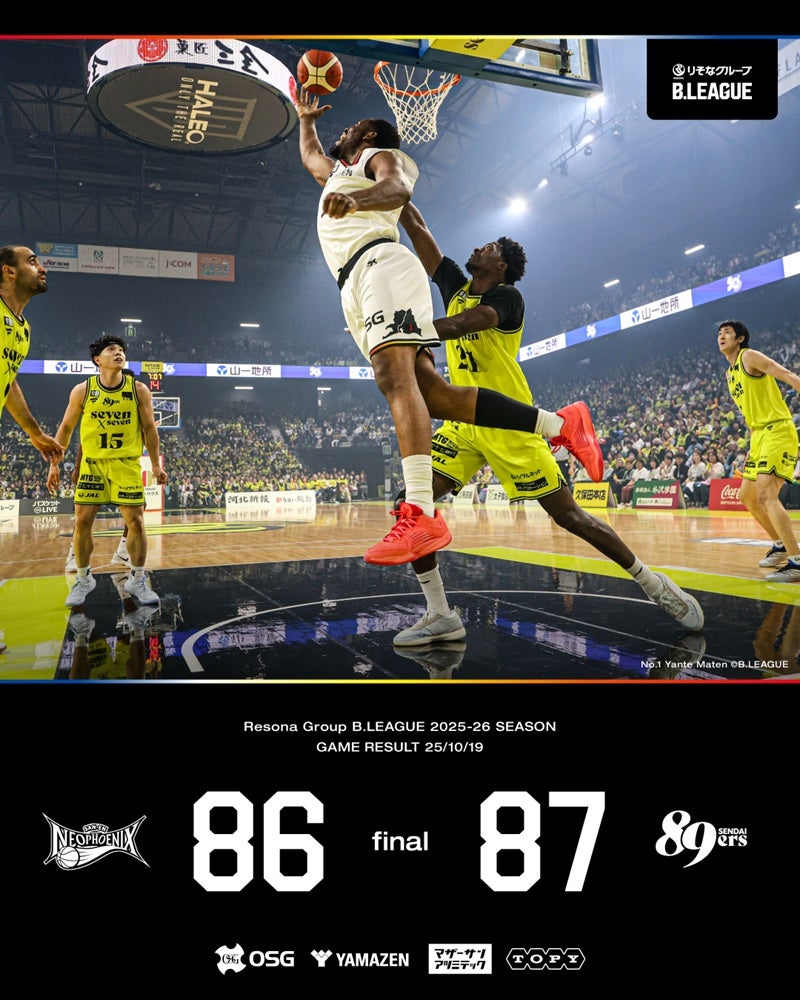 【試合結果】10/19(日)りそなグループ B.LEAGUE 2025-26 B1リーグ戦 第4節 GAME2 仙台 87-86 三遠