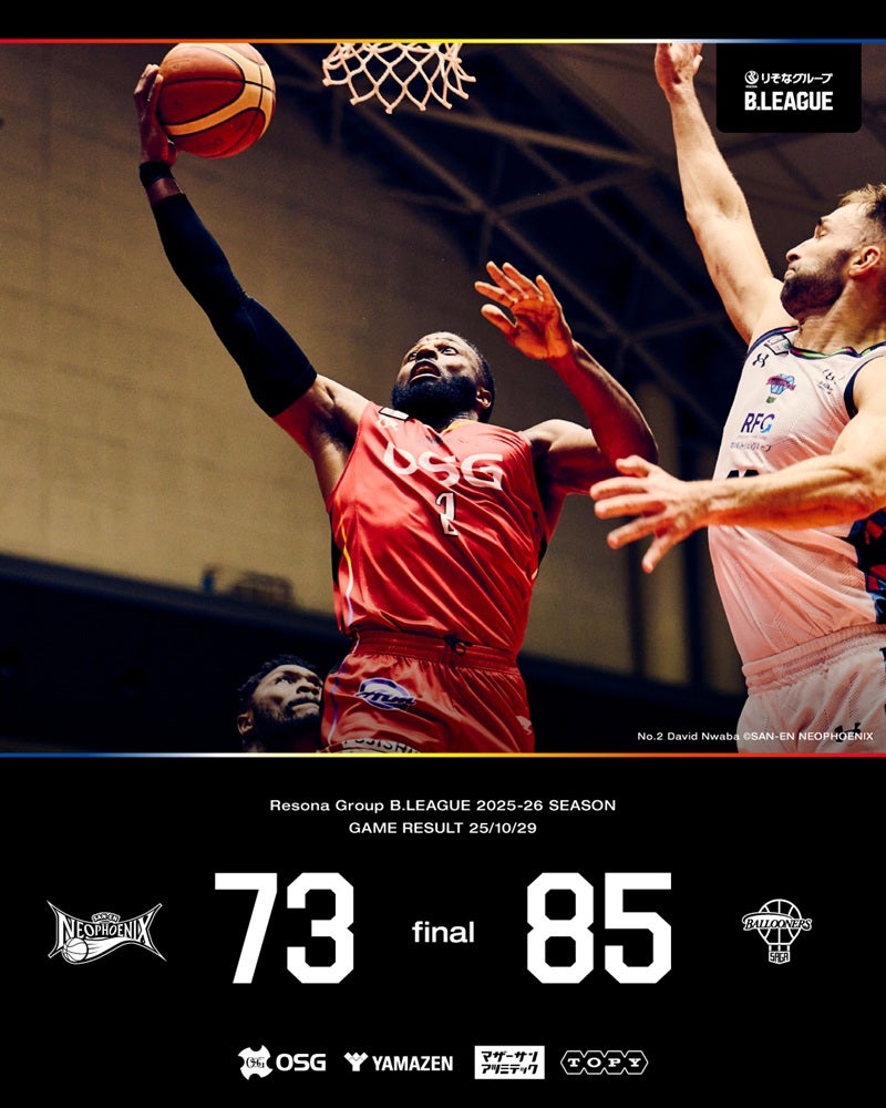 【試合結果】10/29(水)りそなグループ B.LEAGUE 2025-26 B1リーグ戦 第6節 三遠 73-85 佐賀