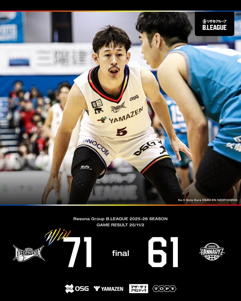 【試合結果】11/2(日)りそなグループ B.LEAGUE 2025-26 B1リーグ戦 第7節 GAME2 京都 61-71 三遠