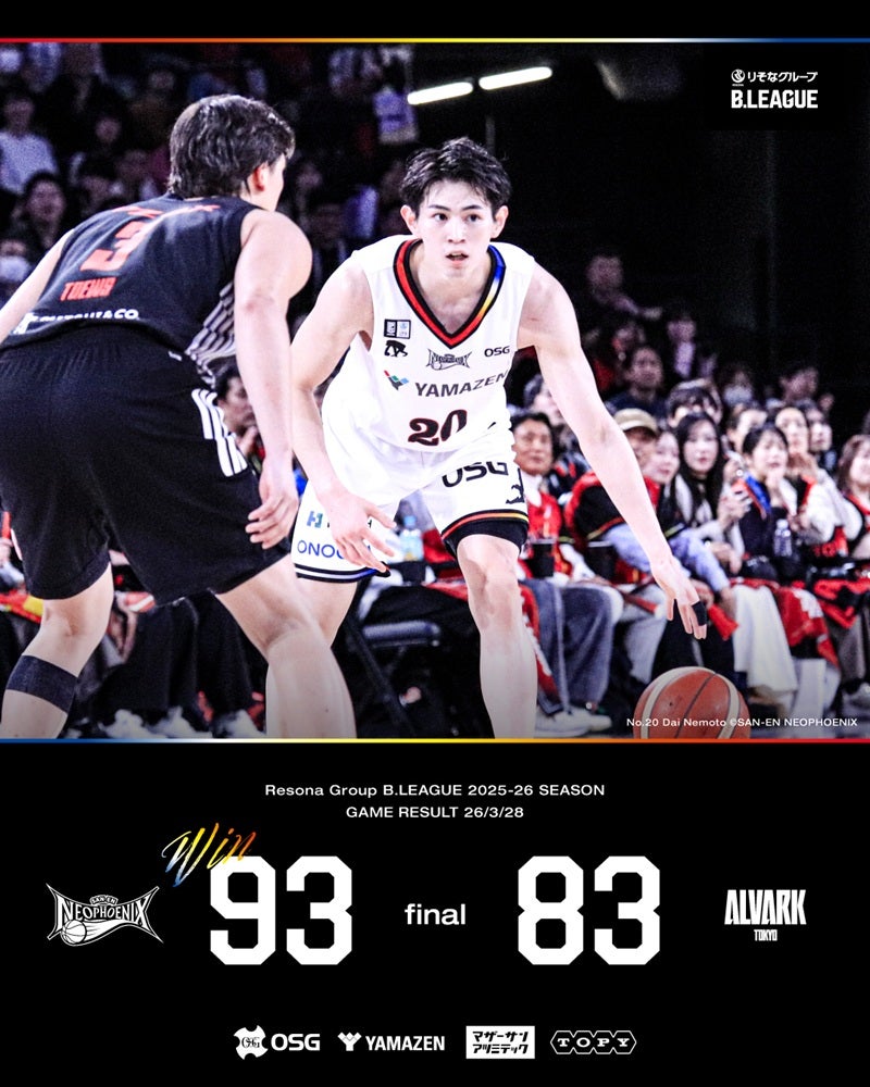 【試合結果】3/28(土)りそなグループ B.LEAGUE 2025-26 B1リーグ戦 第27節 GAME1 A東京 83-93 三遠
