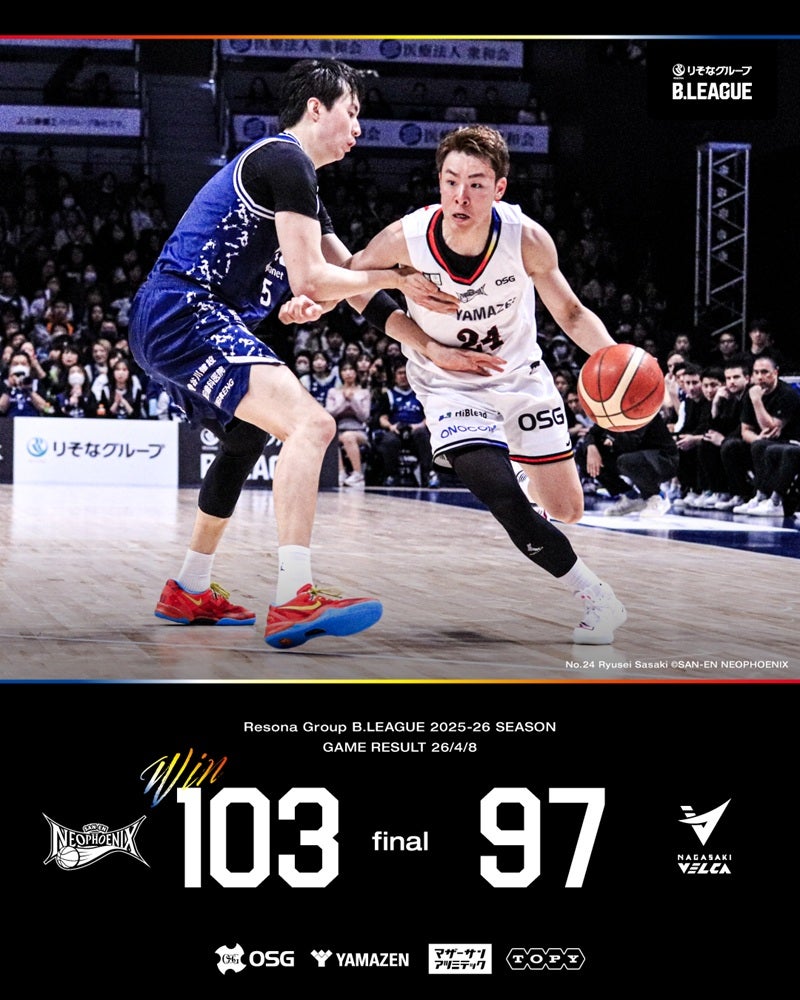【試合結果】4/8(水)りそなグループ B.LEAGUE 2025-26 B1リーグ戦 第30節 長崎 97-103 三遠
