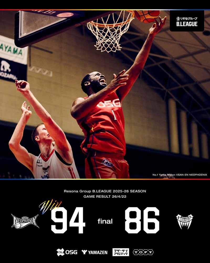 【試合結果】4/22(水)りそなグループ B.LEAGUE 2025-26 B1リーグ戦 第34節 三遠 94-86 富山