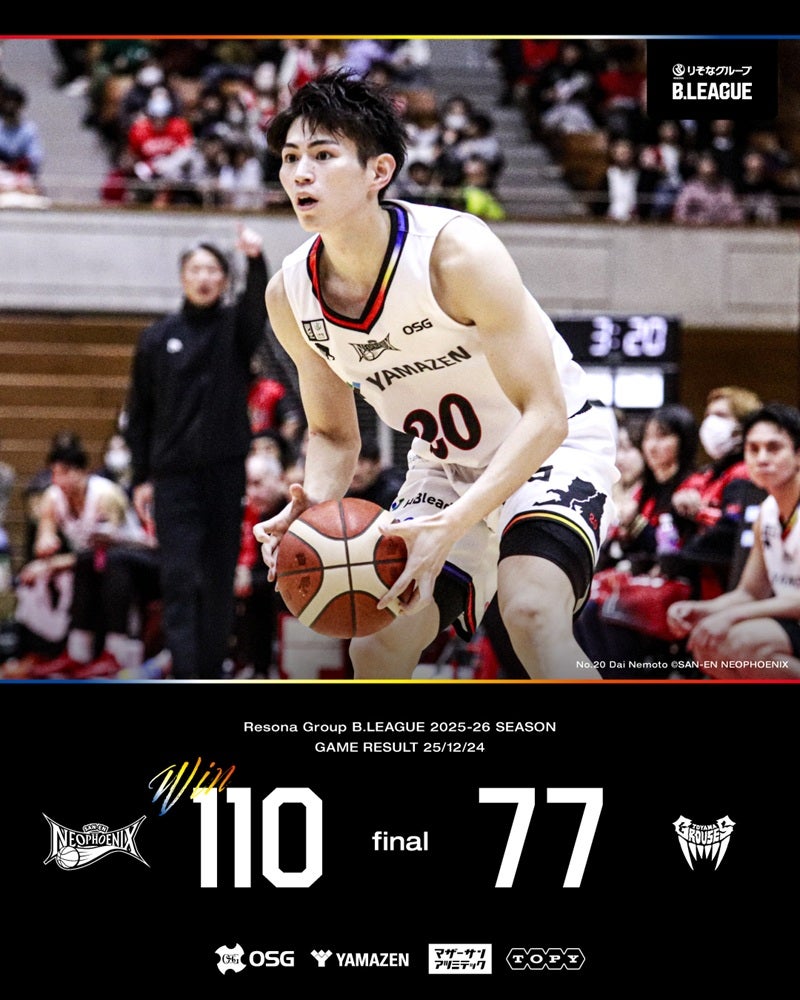 【試合結果】12/20(土)りそなグループ B.LEAGUE 2025-26 B1リーグ戦 第15節 GAME1 三遠 94-109 三河