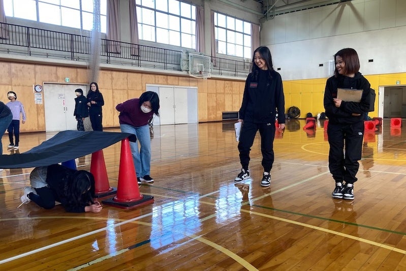 当日はゲストとして、三遠ネオフェニックス 公式チアリーダー FIRE GIRLSも一緒に身体を動かしながらブラインドチャレンジを体験しました。
