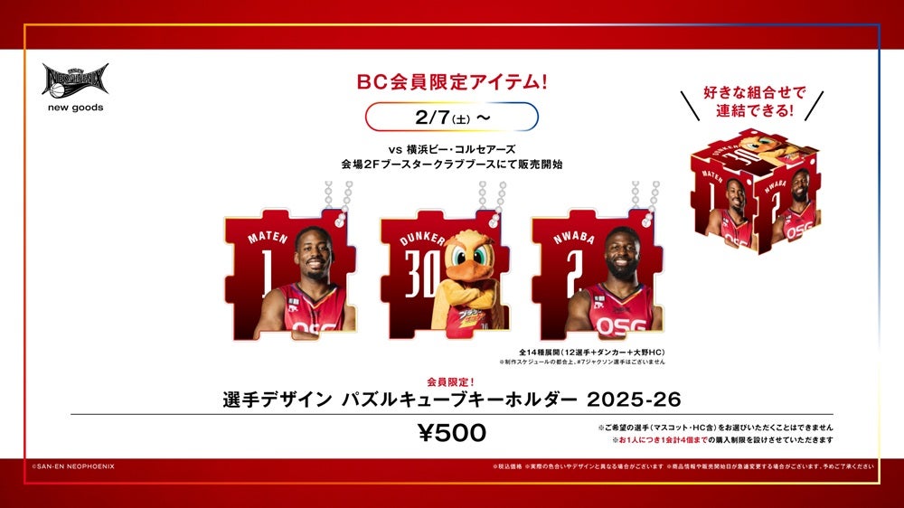 このたび三遠ネオフェニックスでは、2月7日(土)ホーム横浜BC戦より2025-26シーズン 三遠ネオフェニックス ブースタークラブ TEAM30 会員さま限定で、「選手デザイン パズルキューブキーホルダー 2025-26」を販売いたしますので、お知らせいたします。