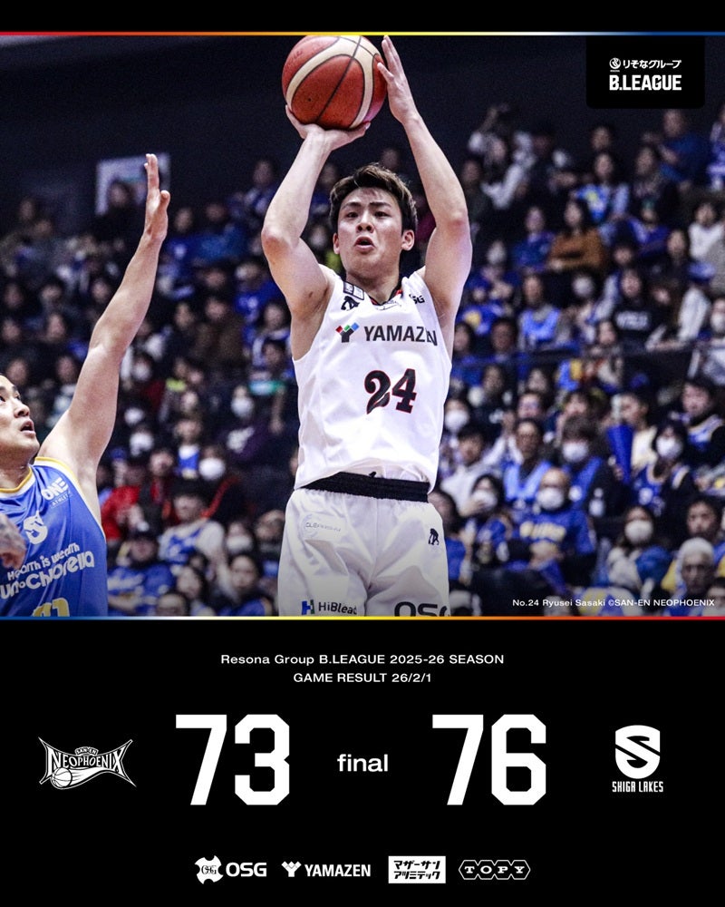 【試合結果】2/1(日)りそなグループ B.LEAGUE 2025-26 B1リーグ戦 第21節 GAME2 滋賀 76-73 三遠
