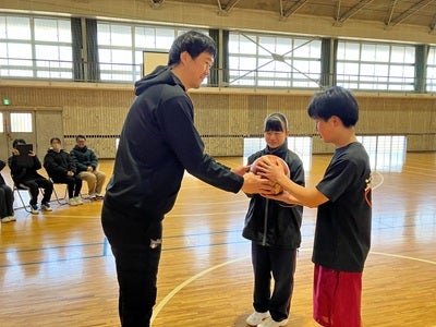 当日は、医療法人 信愛会 理事長 大石 明宣さまと専務理事 大石 宗弘さま、三遠ネオフェニックス アカデミーコーチ 小畑 亜章子、フロントスタッフ 太田 敦也が訪問し、寄贈式およびバスケットボール交流会を実施いたしました。